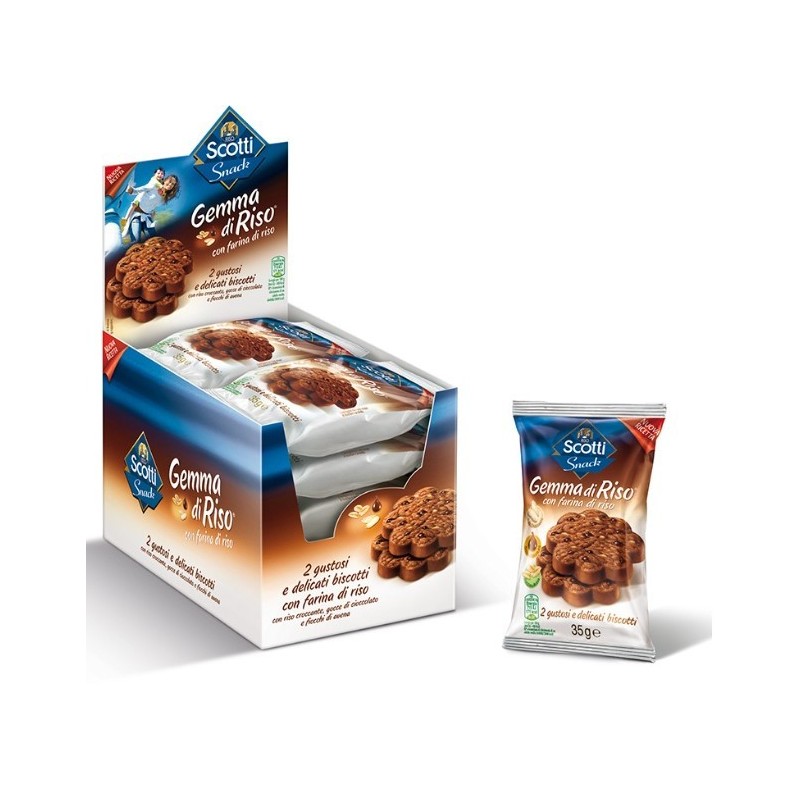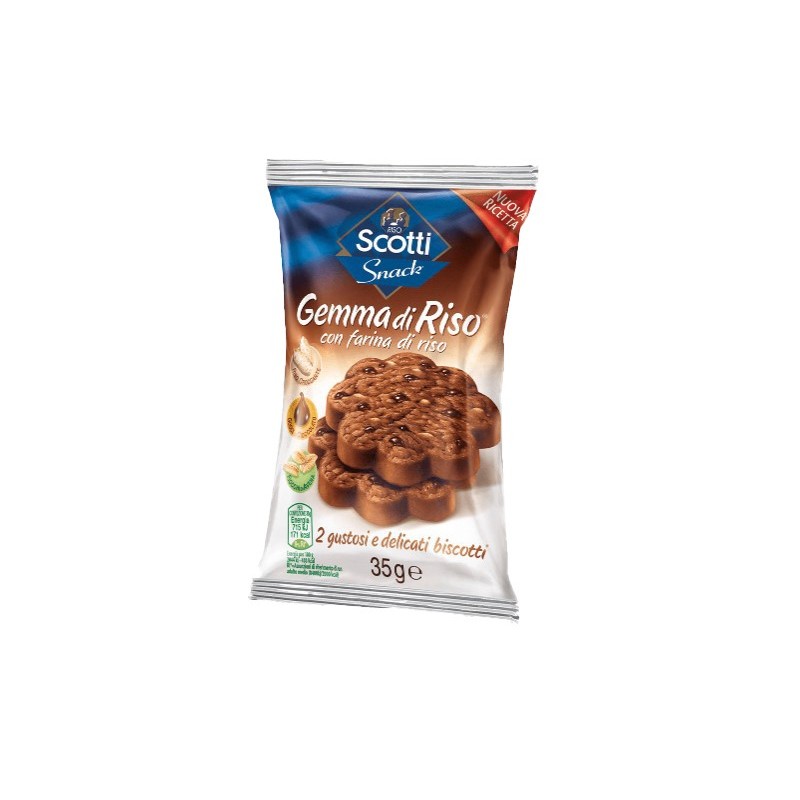 Biscotto frollino con farina di riso, al cioccolato e cereali.